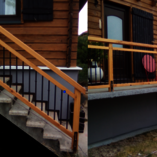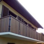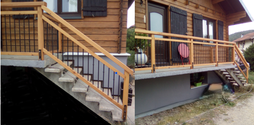 Barrières en mélèze, panneaux inox perforés et tube inox.